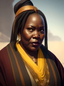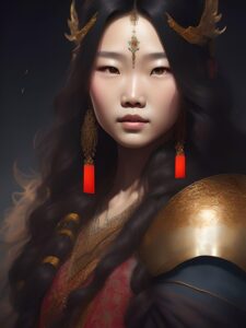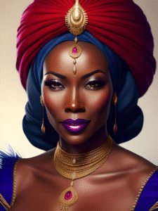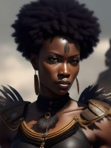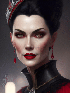 Reina de Umbra, elegante y temible. Su poder no se alza con gritos, sino con una sola mirada.