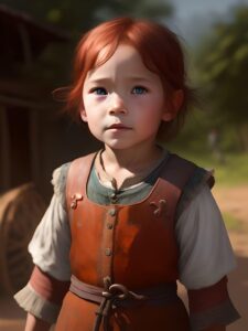 Niña de cabello cobrizo y mirada luminosa. Inocencia que ilumina incluso los rincones más oscuros.