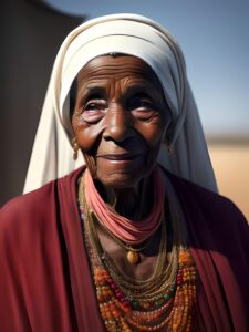 Matriarca de mirada cansada y corazón inmenso. Su fortaleza está hecha de paciencia.