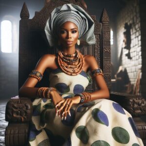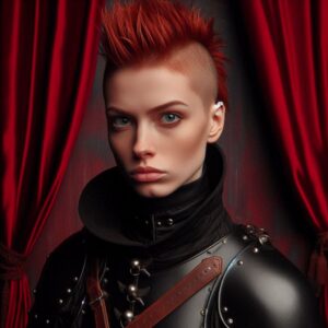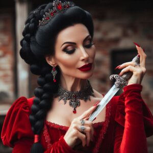 Reina de Umbra, elegante y temible. Su poder no se alza con gritos, sino con una sola mirada.