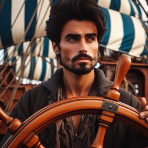 Capitán de pasado oscuro y sonrisa descarada. Navega entre la culpa, la pasión y un mar que nunca perdona.