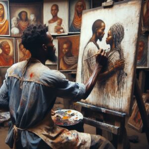 Pintor sensible y esposo fiel. Ama incluso cuando sabe que es traicionado, hasta que el amor se vuelve su mayor resistencia.