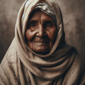 Matriarca de mirada cansada y corazón inmenso. Su fortaleza está hecha de paciencia.