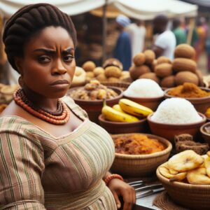 Vendedora del mercado con buen ojo para las personas. Sabe a quién ayudar y a quién mantener lejos.
